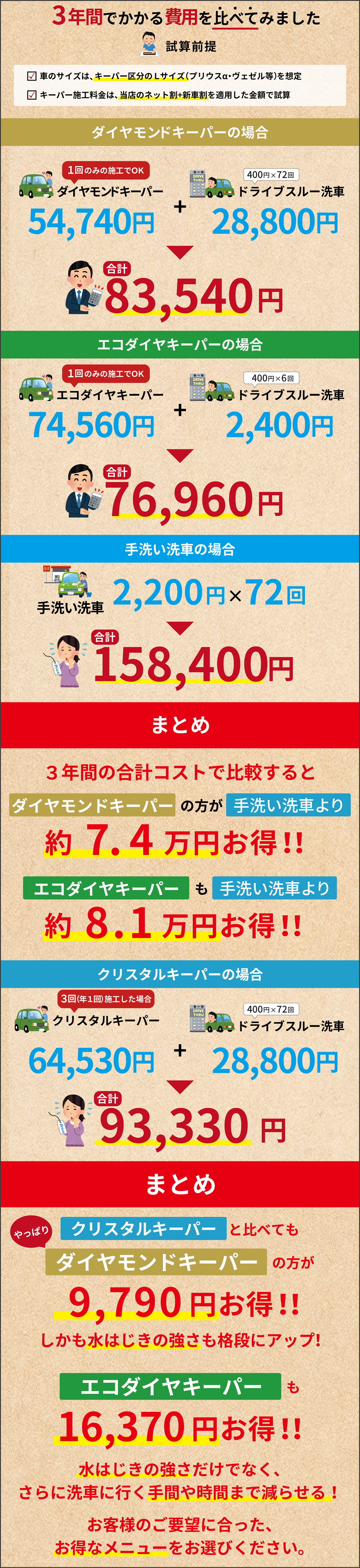 カーディーラーや車販売店のコーティング料金より断然お得!