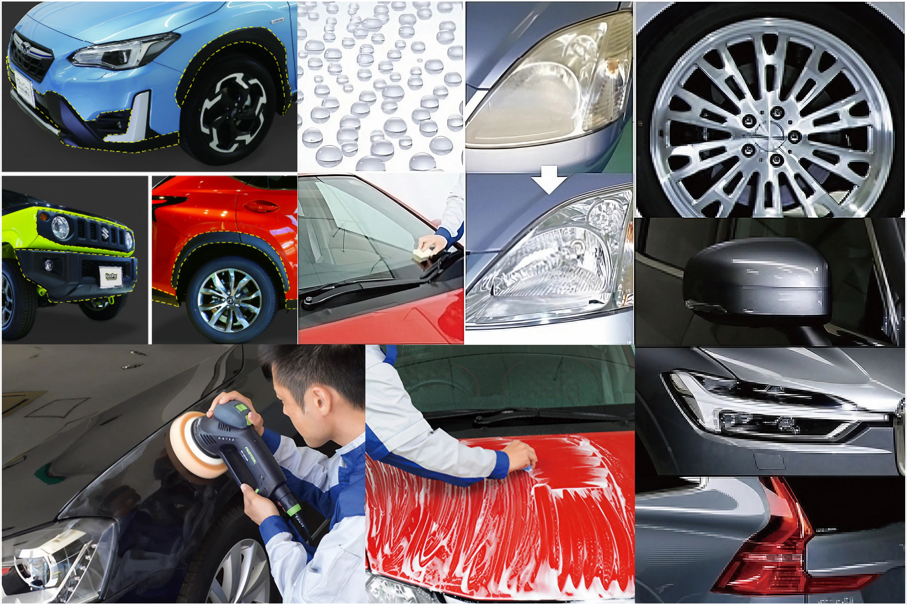 | 工程 | 手洗い洗車+水垢取り+軽研磨+ガラスコーティング+レジン加工 |